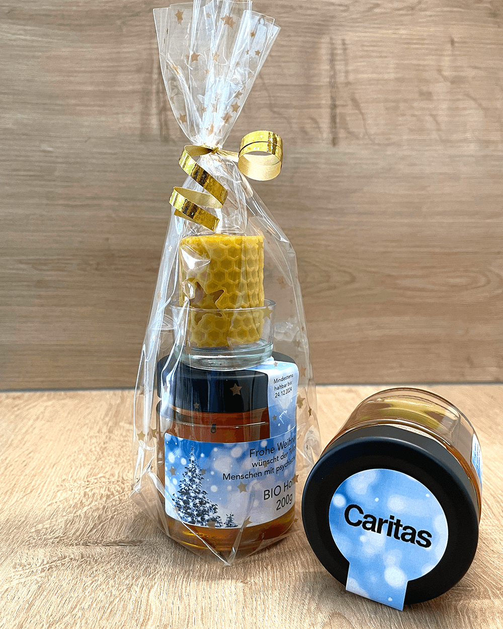 Mit eigenen Etiketten versehen, wird unser Bio Honig zu einem persönlichen und unverwechselbaren Geschenk. Sie haben die Möglichkeit, das Etikett individuell zu gestalten und somit eine persönliche Botschaft oder ein Firmenlogo auf das Etikett zu drucken. Dies macht den Honig nicht nur zu einem leckeren Genuss, sondern auch zu einem hervorragenden Werbemittel, das Ihre Marke in den Vordergrund stellt.